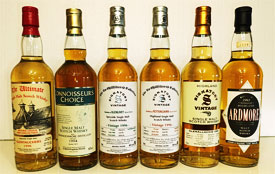 Natürlich spielt das Alter eine wichtige Rolle beim Whisky. Aber auch das Jahr, in dem destilliert wurde, ist ein Hinweis auf die Qualität. Wir haben Whiskys aus dem vorigen Jahrtausend von unabhängigen Abfüllern herausgesucht, um ein wenig in der Nostalgie des 20. Jahrhunderts zu schwelgen: Glentauchers 1996 The Ultimate 46%, Mannochmore 1994 Gordon MacPhail 46%, Glenlivet 1996 Signatory Vintage 46%, Fettercairn 1996 Signatory Vintage 46%, GlenAllachie 1996 Signatory Vintage 43% und Ardmore 1993 Gordon MacPhail 43%. Es ist auffällig, dass dazumal noch in geringerer Trinkstärke abgfüllt wurde! |